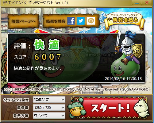 ドラゴンクエスト10でのベンチマークでも、ほぼ同じ能力であった。