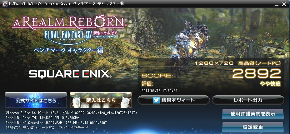 ファイナルファンタジーXIV:新生エオルゼア(新生FF14)」の初期設定ベンチマークでは Core i5 4690Kの方が良い結果となった。
