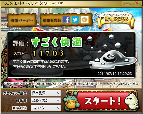 ドラゴンクエスト10でのベンチマークでもグラフィックス性能差がでている。 判定は普通から非常に快適になった。