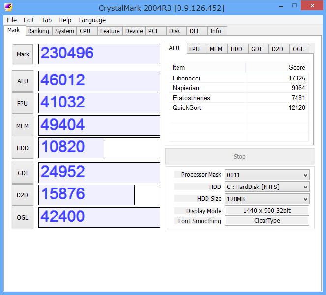 CrystalMarkの結果でも、グラフィックスの評価が劇的に向上している。 バイオハザードベンチマークでも65.6fpsと激増している。 フレームレートが60fpsを超えるとゲームでは快適に使えるのでバイオハザードは 快適にプレイできる。