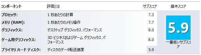 エクスペリエンスインデックスの結果では、グラフィックスの項目が劇的に改善され グラフィックの数値が8.0に到達しました。