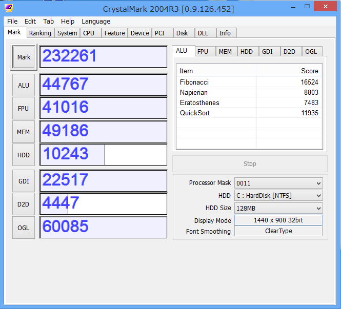 CrystalMarkの結果でも、グラフィックスの評価が劇的に向上している。 OGLが60,000点に到達。 バイオハザードベンチマークでも79.8fpsと激増している。 フレームレートが60fpsを超えるとゲームでは快適に使えるのでバイオハザードは 快適にプレイできる。さすがRADEON R9 270です。