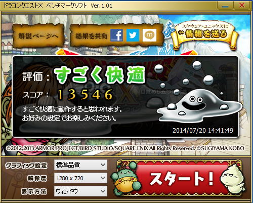 ドラゴンクエスト10でのベンチマークでもグラフィックス性能差がでている。 判定は普通からすごく快適になった。