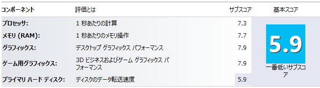 エクスペリエンスインデックスの結果では、グラフィックスの項目が劇的に改善され グラフィックの数値が7.9になりました。
