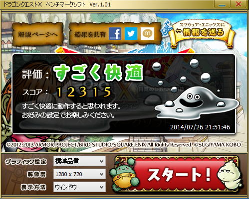 ドラゴンクエスト10でのベンチマークでもグラフィックス性能差がでている。 判定は普通からすごく快適になった。