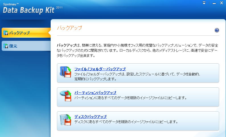 「HD革命/BackUp Next Ver.3」は、パソコン初級者から上級者まで、分かりやすい操作でPCデータを保存できるバックアップ専用ソフト。 パソコン初級者向けの機能を追加し、上級者向けには細やかな設定の編集なども可能になりました。 |
