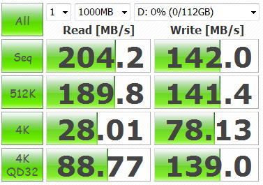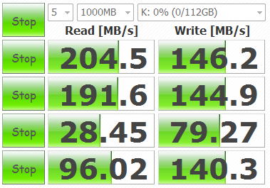 シーケンシャルリード:550MB/s シーケンシャルライト:510MB/s 最大速度550MBであるが、普通に接続して 200MBであった。 SATA U接続、SATA3接続の速度に変化が 見られないのは驚き。 また、 SATA U接続もSATA3接続も体感速度は変わらない。 ノートに適してるかも? |
