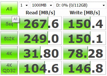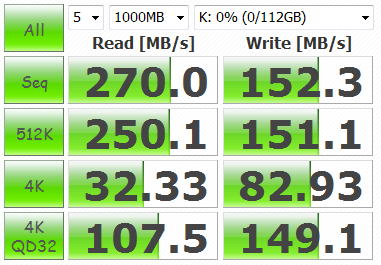 シーケンシャルリード:550MB/s シーケンシャルライト:510MB/s 最大速度550MBであるが、普通に接続して 270MBであった。 SATA U接続、SATA3接続の速度に変化が 見られないのは驚き。 また、 SATA U接続もSATA3接続も体感速度は変わらない。 ノートに適してるかも? メモリチップはインテル製NANDを採用 しているのでその分少し数値が高い。 |